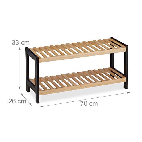 Relaxdays Étagère à Chaussures, 2 Niveaux, pour 6 Paires, Bambou et MDF, HLP : env. 33 x 70 x 26 cm, Nature et Noir