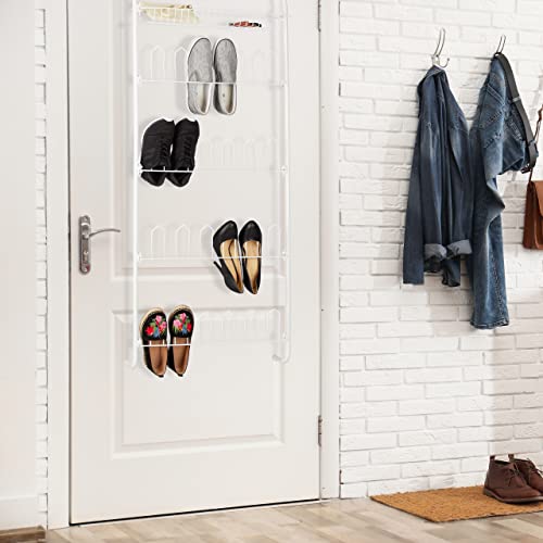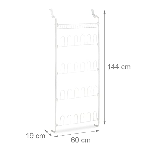 Relaxdays Range-chaussures portes, 12 paires, à suspendre, rangement 4 niveaux, fer, HLP : 144 x 60 x 19 cm, blanc