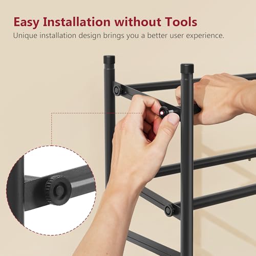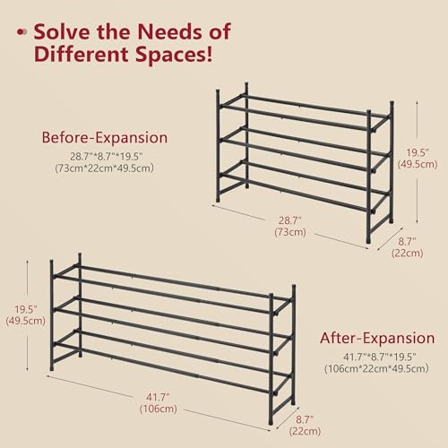 Tajsoon Étagère à chaussures empilable à 3 niveaux, extensible et réglable, étagère à chaussures en fer pour placard, chambre à coucher, entrée, noir