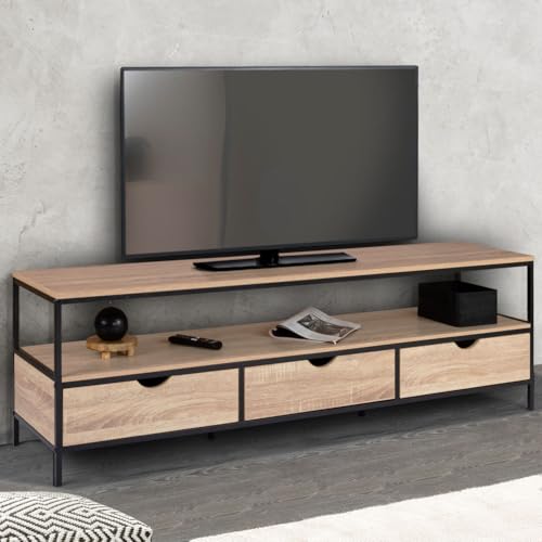 IDMarket – Meuble TV 160 cm Detroit 3 tiroirs Design Industriel