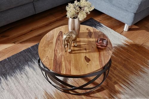 FineBuy Table Basse Bois Massif Sheesham Table de Salon 60 x 30 x 60 cm | Table d’appoint Style Industriel | Meubles en Bois Naturel Table de Sofa Cadre en métal