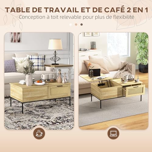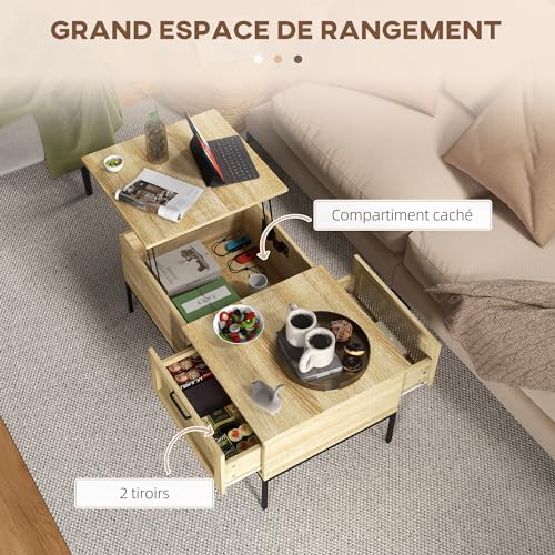 HOMCOM Coffee Table with Lift Up Top Living Room Table with 2 Large Drawers Steel Frame 106.5 x 56.5 x 48 cm Natural