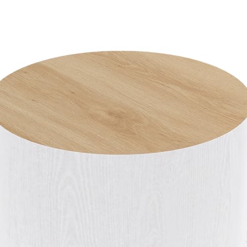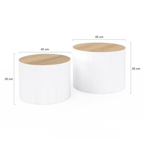 IDMarket – Lot de 2 Tables Basses cylindres gigognes Galia Bois et Blanc