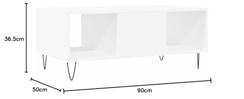 Table Basse with Bois d’Ingénierie, Design Moderne, Grand Espace de Rangement, Coffee Table, Tables de Salon, pour Salon, Blanche, 90 x 50 x 36.5 cm