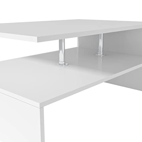 【Design Moderne Élégant】Cette table basse au design moderne s’intègre parfaitement dans n’importe quel intérieur. Fabriquée en bois d’ingénierie avec des bords en PVC et des supports en acier inoxydable, elle est idéale comme table basse salon ou table basse blanche dans un salon contemporain.