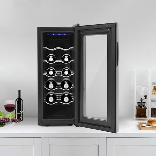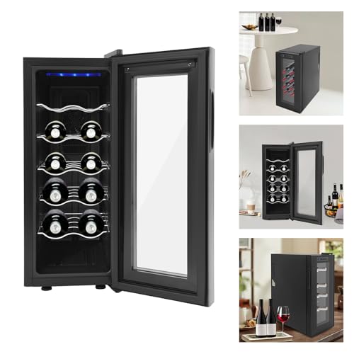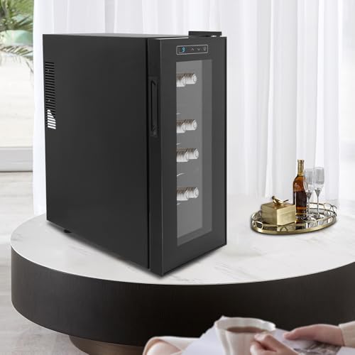 Armoire réfrigérante à vin pour 12 bouteilles, Wine Climate Cabinet, écran LED et panneau tactile intuitif, il y a cinq étagères, famille, bureau, hôtel, bar, club, 55 % à 75 % de zone de