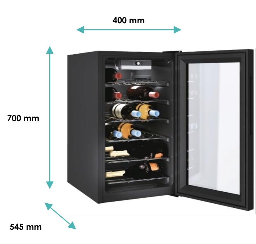 Étagères chromées : en acier inoxydable, sur chaque étagère, vous pourrez conserver jusqu’à 4 bouteilles