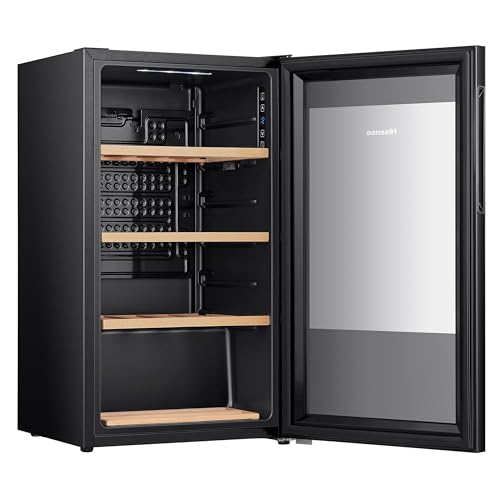 Hisense MWC4894GF – Cave à Vin 30 Bouteilles, Monotemperature, Vitres Anti-UV, Étagères en Bois, Écran Tactile, Éclairage LED, Année 2023