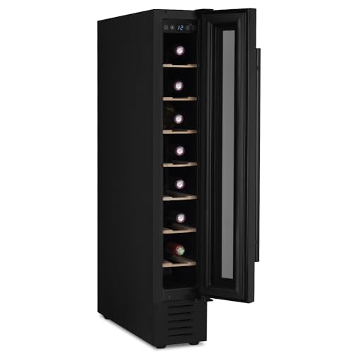 LES PETITS CHAMPS Cave à Vin Encastrable 7 Bouteilles CAVSEB7 Black Edition, Capacité 22L, Acier Inoxydable, Réglable de 5°C à 22°C, Système Thermodynamique, Éclairage LED, Anti-UV, 6 étagères