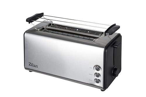 Zilan, Grille-pain à fente longue, 4 tranches de Toastautomatique, XXL, 5 niveaux de rôtissage, accessoire de pain, fonction décongélation, tiroir ramasse-miettes en acier inoxydable