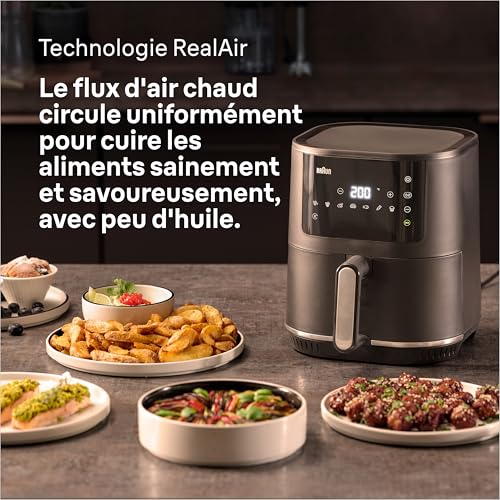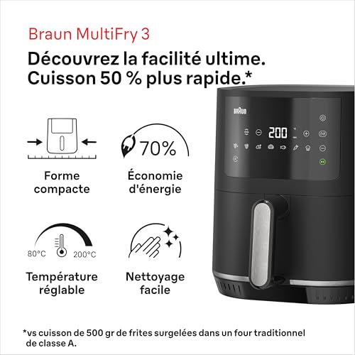 Braun MultiFry 3 HF3030IBK, Friteuse à Air avec Capacité de 4.3L, Contrôle de Température Numérique de 80-200°, Technologie RealAir, 8 Programmes Préréglés, Contrôle Tactile, 1500W, Noir Mat