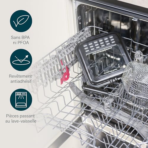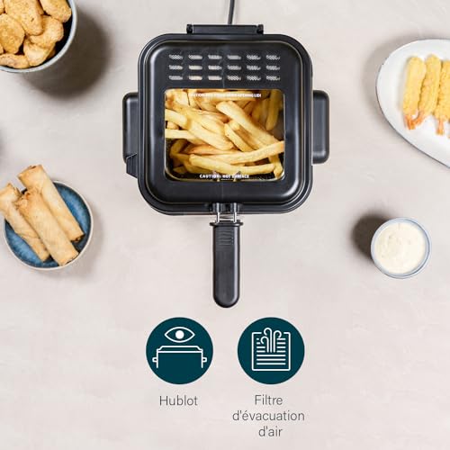 Son couvercle est doté d’une large fenêtre qui vous offre la possibilité de surveiller la cuisson sans ouvrir la friteuse. Un filtre anti-odeurs limite aussi les odeurs de fritures désagréables.