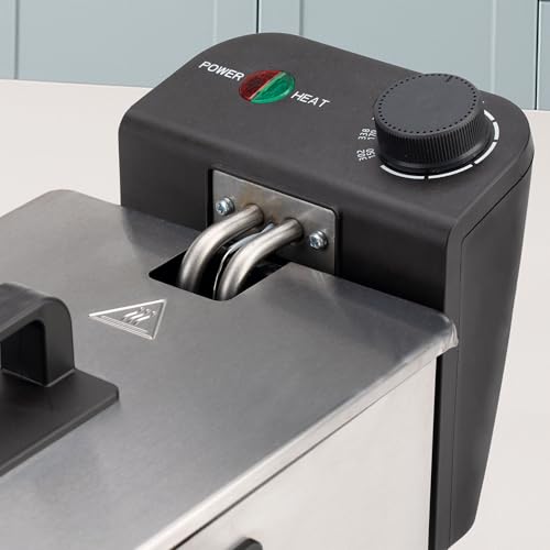 JATA JEFR1678 Friteuse à huile 4 l 2000 W | Thermostat réglable avec indicateurs lumineux | Zone froide pour huile propre et sans odeurs | Démontable | Nettoyage facile | Corps et couvercle en acier