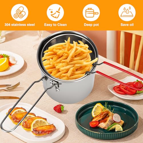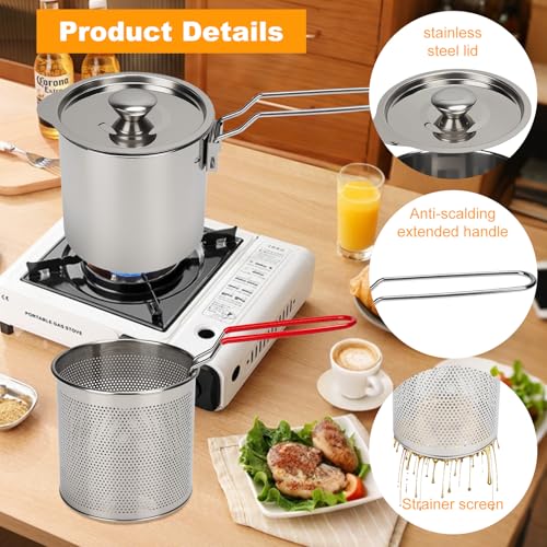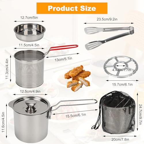Mini Friteuse Acier Inoxydable 304 avec Mailles Filtre Fines, Marmite Huile Multifonctionnelle 1.2 L, Récipient à Graisse Friteuse, Poignée Anti-Scalding, Panier et Pot Pour Tempura, Poisson, Frites