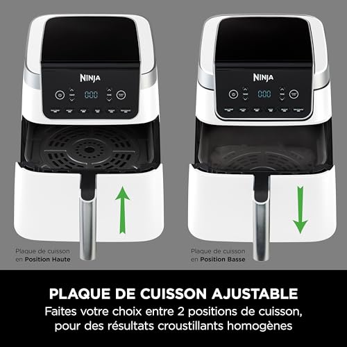 Une friture plus saine, une plus grande capacité*. Vous recherchez une friteuse compacte capable de cuire pour toute la famille sans prendre trop de place dans la cuisine ? La friteuse Ninja Air Fryer MAX PRO peut contenir jusqu’à 4 blancs de poulet grâce à un tiroir de 6,2 litres – parfait pour cuisiner pour une ou quatre personnes. Cuisinez en utilisant jusqu’à 60 % d’énergie en moins qu’un four**, avec des aliments prêts jusqu’à 50 % plus rapidement que les fours à chaleur tournante***. La friteuse utilise peu/ pas d’huile pour une cuisine saine – jusqu’à 75 % de matières grasses en moins que les méthodes de friture traditionnelles****. Friteuse livrée avec plaque réglable – utilisez-la en position basse pour cuire uniformément les aliments et les rendre croustillants, ou en position haute pour cuire des aliments plus petits. Pièces amovibles lavables au lave-vaisselle. Faites de votre cuisine une cuisine Ninja. *Ninja AF160 **Les tests et les calculs sont basés sur temps de cuisson recommandé pour les saucisses, en utilisant la fonction de friture sans huile par rapport aux fours conventionnels. ***Test réalisé avec des bâtonnets de poisson et des saucisses. ****Par rapport à des frites frites à la main.