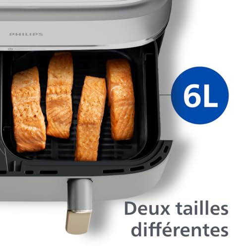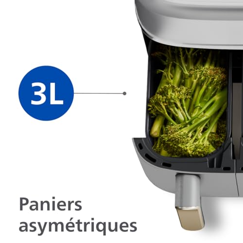 Philips Airfryer Série 3000 – Air Fryer Double Panier, 9L, Technologie RapidAir, jusqu’à 90% de matières grasses en moins, Economies d’énergie, Application HomeID, coloris Blanc (NA353/10)