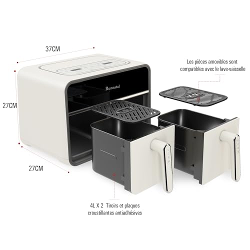 Runnatal Air Fryer double zone, 8 L Airfryer, sans huile, 2 tiroirs, programmes de cuisson 14 en 1, casseroles pour légumes et viande, écran tactile, faible en gras, compatible lave-vaisselle