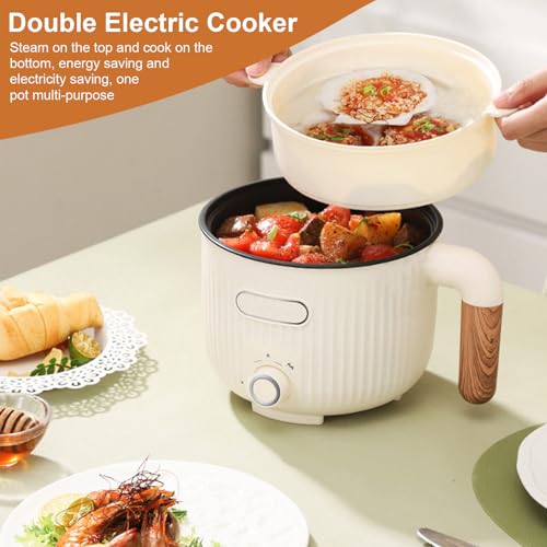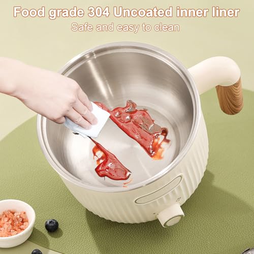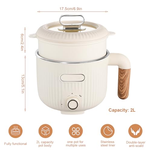 Hot Pot électrique 2 litres, mini multicuiseur portable antiadhésif avec panier vapeur, acier inoxydable, marmite électrique, cocotte à frire, ramen rapides, marmite à soupe, double contrôle de