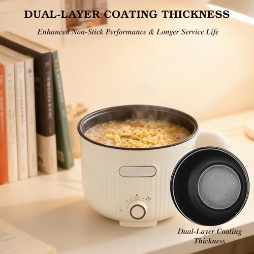 Cuiseur électrique avec fonction de cuisson à la vapeur, poêle électrique 2 L, autocuiseur multifonctions antiadhésif portable, mini marmite rapide, casserole de voyage, cuiseur à nouilles, casserole électrique, idéal pour la cuisine, le dortoir, les voyages