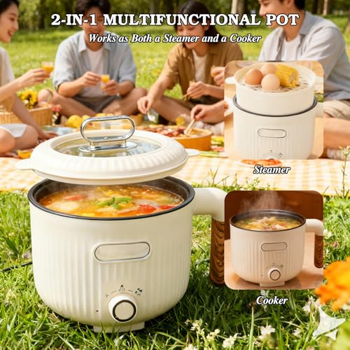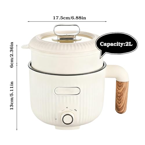 Hot Pot électrique avec cuiseur vapeur, poêle électrique de 2 l, multicuiseur portable, anti-adhésif, mini marmite rapide, pot de voyage, cuiseur à pâtes, casserole électrique, idéal pour la cuisine