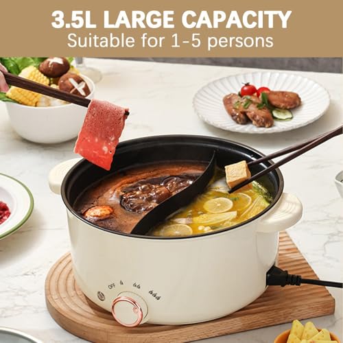 Hot Pot électrique de 3,5 L, Casserole électrique avec séparateur 1000W, Trois réglages de puissance Antiadhésif Poêle polyvalente Soupière rapide pour frire Ramen Fondue Soupe