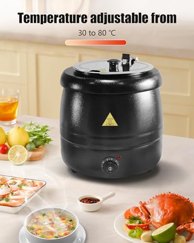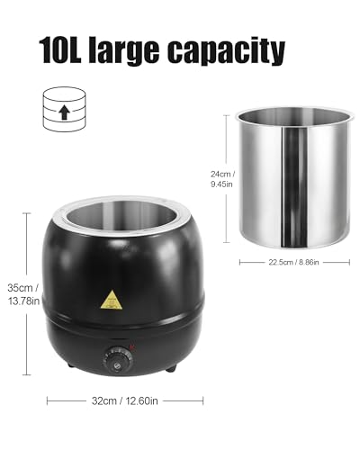 Marmite à Soupe électrique 10L, Chauffe-Soupe avec Couvercle Rabattable et Intérieur en INOX Amovible Jusqu’à 35-80°C, Thermos Soupière électrique pour Événement Commercial Réunions Famille