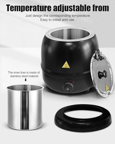 VIELSEITIG ANGEWENDET: Dieser elektrische Suppenwärmer eignet sich perfekt für den kommerziellen und privaten Gebrauch, z. B. zum Warmhalten von Suppe, Käse, Glühwein usw. bei Familientreffen und -veranstaltungen, Partys, Buffets, Fast-Food-Lokalen, Imbissbuden, Restaurants, Hochzeiten, Versammlungen, Catering-Events oder anderen besonderen Anlässen, bei denen Sie Speisen warm und schmackhaft halten müssen.