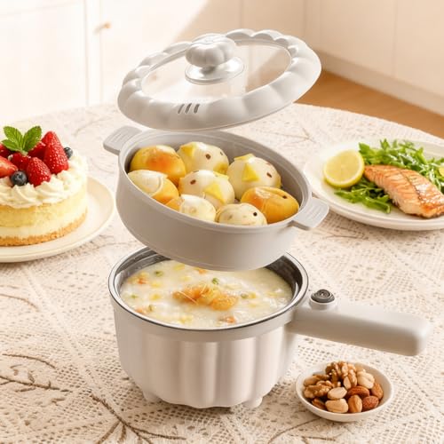 Pot à chaud électrique de 2 l avec cuiseur vapeur, hotpot, mini cuiseur électrique, mini cuiseur électrique antiadhésif, mini poêle électrique antiadhésive, réchaud rapide pour la maison, le bureau, le dortoir