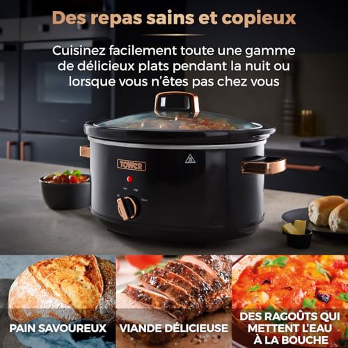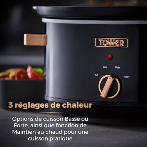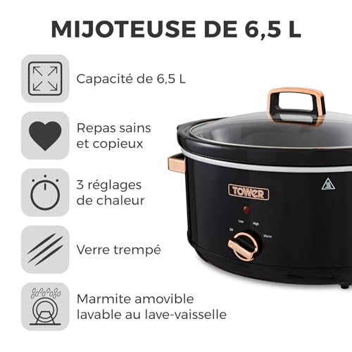 Tower T16019RG Infinity Mijoteuse Électrique – Mijoteuse – Poêle Électrique avec 3 Réglages de Chaleur et Fonction Maintien au Chaud – 6,5 L – 270 W – Noir et Or Rose