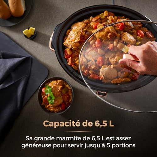MIJOTEUSE DE 6,5 L AVEC 3 RÉGLAGES DE CHALEUR : Basse et Forte, ainsi qu’une fonction de Maintien au chaud pour que votre repas soit prêt lorsque vous rentrez du travail.