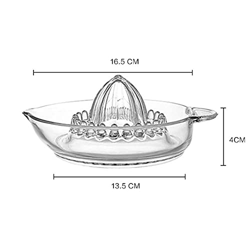 Le presse-agrumes en verre mesure 14,5 cm (largeur) * 6,5 cm (profondeur);