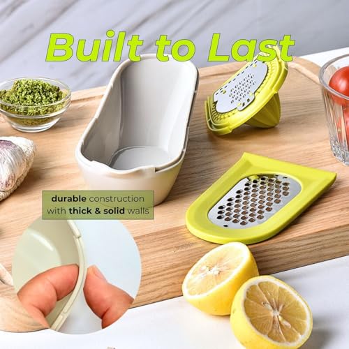 Comprend un récipient à jus et une râpe en acier inoxydable – Recueillez le jus dans le récipient attaché tout en zestant directement avec la râpe métallique.
