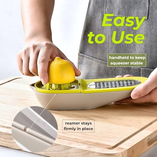 CLOVE 2in1 Presse Citron Manuel Plastique Sans-BPA avec Zesteur Agrumes Inox avec Conteneur, Petite Presse Agrume Solide de Table, Rape Zeste Metal Lemon Squeezer Citrus Juicer Lave-Vaisselle