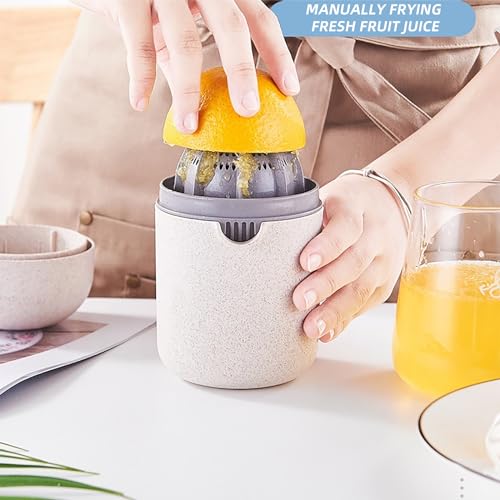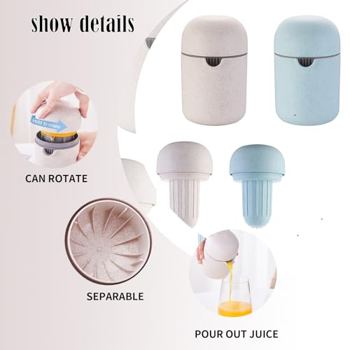 KAYEF 2 pcs pressoir agrume manuel, pressoir agrumes, manual orange lemon press, portable manual juicer for limes, oranges, tangerines, grapefruits (beige + blue)