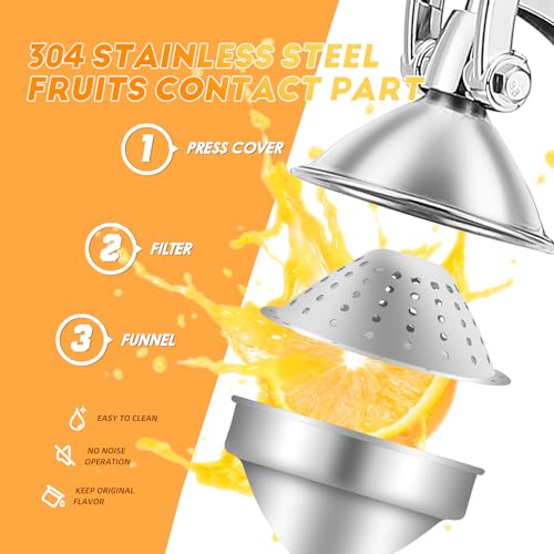 Sûr Et Facile à Nettoyer – Ce presse-fruits manuel utilise un moule pointu en acier inoxydable 304 de qualité alimentaire. Le moule en plastique durable est facile à nettoyer, et le filtre amovible simplifie le processus. REMARQUE: LE CORPS PRINCIPAL EST EN ALLIAGE DE ZINC; ÉVITEZ LE CONTACT DIRECT AVEC LES FRUITS.