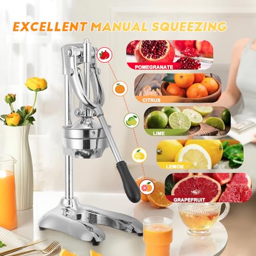 Presse-Agrumes Professionnelle – Le pressage manuel préserve le goût pur et les nutriments. Convient pour extraire le jus de fruits tendres comme les raisins, citrons, limes, oranges, grenades, mandarines, pastèques et pamplemousses.