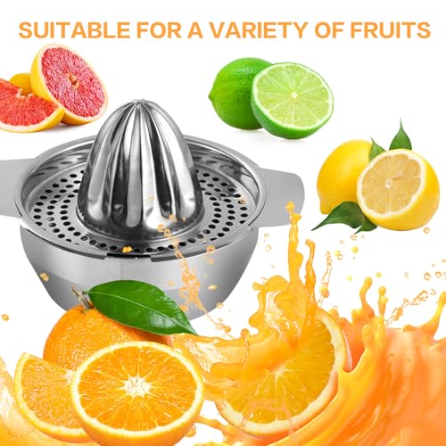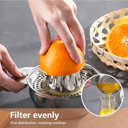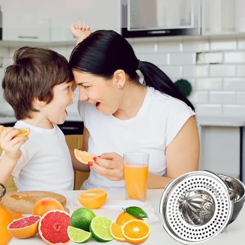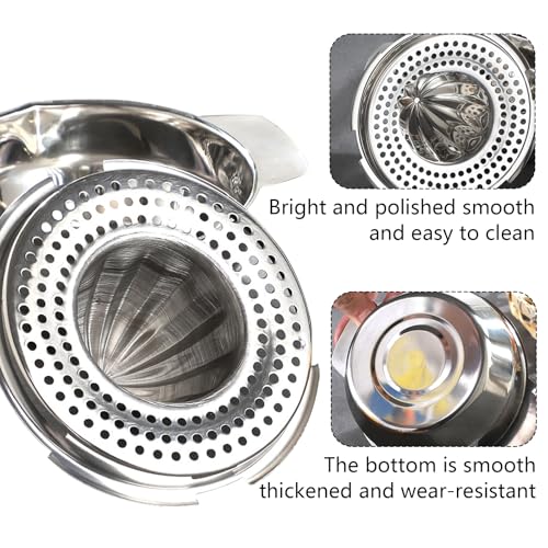 Presse Agrumes Manuel Citron Professionnel Inox, Presse Citron Rotation Presse Facile à Nettoyer pour Presser Citrons, Extracteur de Jus avec Tamis et 2 Becs Verseurs, Passe au Lave-Vaisselle