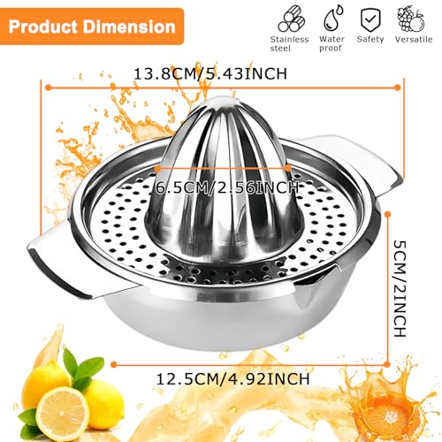 【Taille Du Produit】Le diamètre de ce presse agrumes inox est de 13,8 cm et la hauteur est de 11,5 cm. Le récipient contient 450 ml, ce qui vous permet d’extraire beaucoup de jus sans en perdre une goutte.