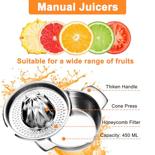 Presse Agrumes Manuel en Inox Presse Orange Manuel avec Récipient, Presse Citron Manuel pour Presser Citrons Oranges Agrumes, Compatible Lave-Vaisselle (Capacité : 450ML)