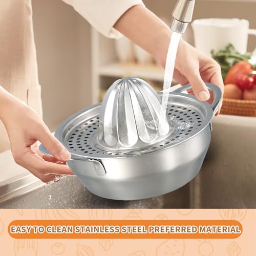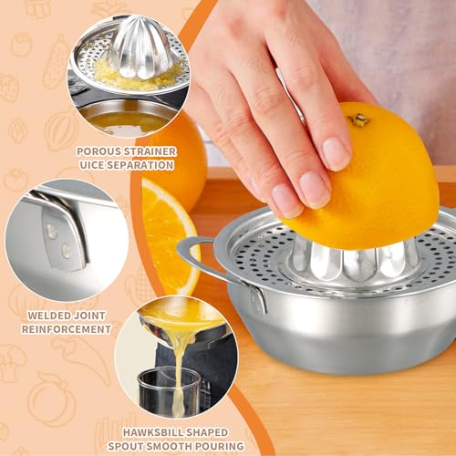 Presse Citron Manuel à Double Poignée, Presse Agrumes Inox de Haute Qualité, Presse Agrumes avec Bec Verseur pour une Séparation Facile de la Pulpe et du Jus, Facile à Nettoyer