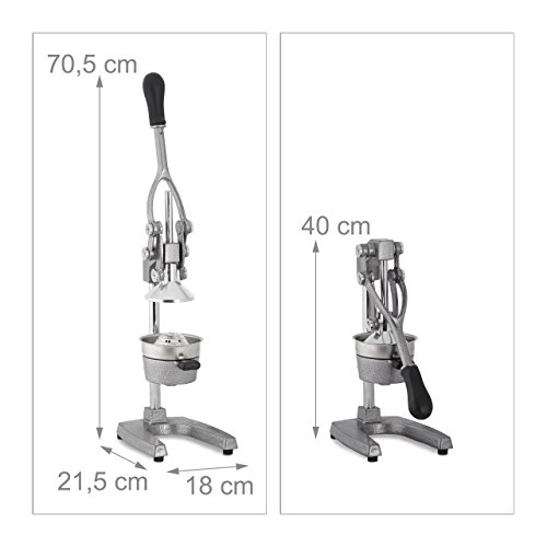 Entretien facile: ce presse-citron à levier mesure HxlxP: 40 x 18 x 21,5 cm et pèse 6 kg – Le presse-agrumes en inox antirouille est facile à utiliser