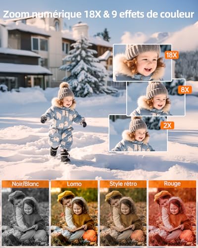 【Appareil photo et vidéo multifonctionnelle】L’appareil photo offre une variété de modes pratiques, dont la Rafale, le time-lapse, le ralenti, l’enregistrement en boucle, etc. En outre, cet camera numérique offre également de nombreux filtres et options de balance des blancs. Le flash intégré permet de prendre des photos de haute qualité même dans des conditions de faible luminosité