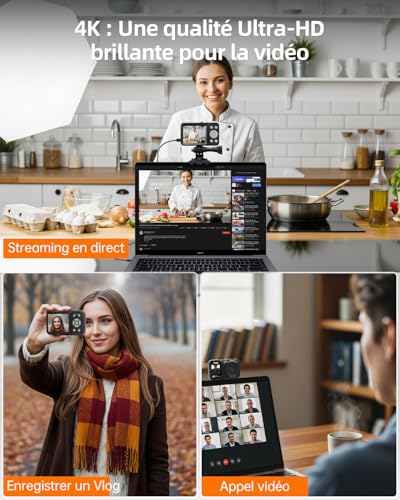 【Caméra numérique avec fonction webcam】Cette caméra vlog polyvalente peut également servir de webcam pour rendre votre communication plus vivante. Elle peut être utilisée pour les appels vidéo, le streaming en direct ou les cours en ligne sur TikTok, YouTube, Facebook, etc. De plus, grâce au câble de données, vous pouvez facilement transférer photos et vidéos de l’appareil vers votre ordinateur ou votre smartphone pour partager des moments précieux avec vos proches