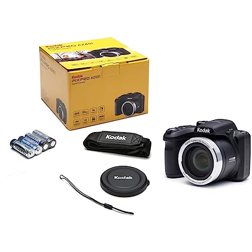 KODAK Pixpro AZ401 – Appareil Photo Bridge Numérique 16 Mpixels, Enregistrement vidéo, Grand angle 24 mm, Ecran LCD 7,6 cm, Panorama 180° – Noir