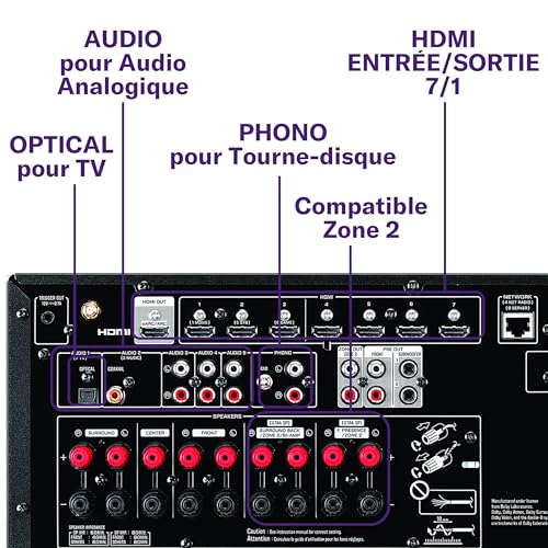 Un son de haute qualité grâce au mode Cinema DSP 3D – tout comme dans une salle de concert / L’amplificateur dispose d’une entrée phono, de 7 entrées HDMI et d’une sortie HDMI