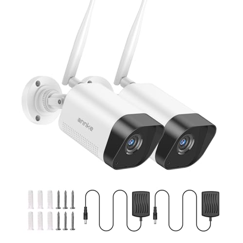 ANNKE WiFi Caméra de Sécurité 3MP Super HD 2 Caméras Bullet Sans Fil avec Enregistrement Audio de 15 pieds ,Imperméable IP66 Intérieur Extérieur Caméra avec Vision Nocturne Intelligente à LED IR
