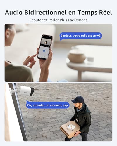 【Caméra tout temps avec Etanche IP66】Dotée de la norme IP66, la caméra extérieure sans fil étanche est conçue pour braver tous les temps difficiles tels que la pluie, le vent, les chutes de neige, les tempêtes de sable, etc. Il suffit d’installer la caméra résistante à la corrosion et aux intempéries à l’extérieur ou à l’intérieur.