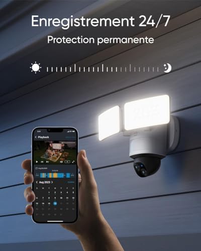 – Luminosité de 2 000 lumens avec éclairage intelligent : personnalisez la lumière selon votre emploi du temps et vos besoins. Réglez-la pour un éclairage activé par le mouvement ou un éclairage ambiant. Votre caméra est à la fois un éclairage et un agent de sécurité.