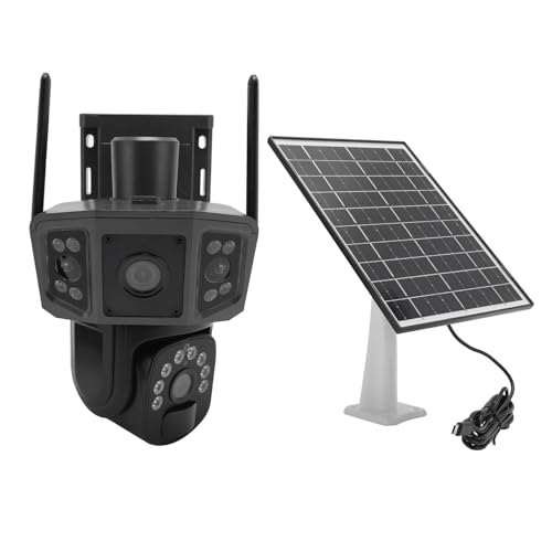 Goshyda Cameras de sécurité Solaire Extérieure, 4K 8MP HD Two Lens Battery Powered Outdoor Camera, WiFi Home Security with Spotligh