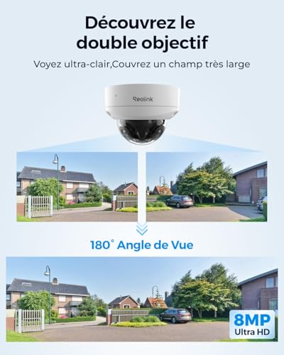 ULTRA-HAUTE DÉFINITION ET DOUBLE LENTILITÉ :Dotée d’une clarté de 8MP, cette caméra capture des images impeccables avec une grande richesse de détails. Associée à la conception à double objectif offrant une vue panoramique à 180°, elle offre la fonctionnalité de deux caméras en une, réduisant ainsi les coûts d’installation tout en assurant une couverture étendue.